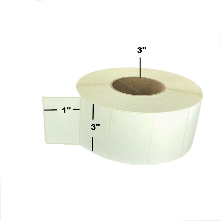 3" x 1", Thermal Transfer, Perforated, Roll, 3" Core, Polyester Gloss, $90.33 per Roll in 1 Roll Case.