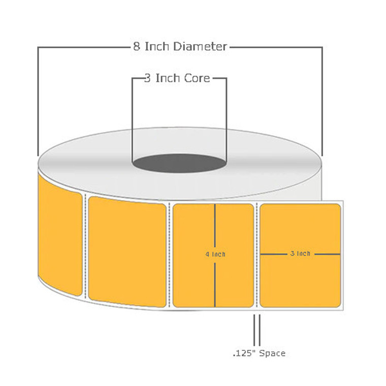 4" x 3", Thermal Transfer, Perforated, Roll, 3" Core, Coated, General Use, Orange, $29.50 per Roll in 4 Roll Case