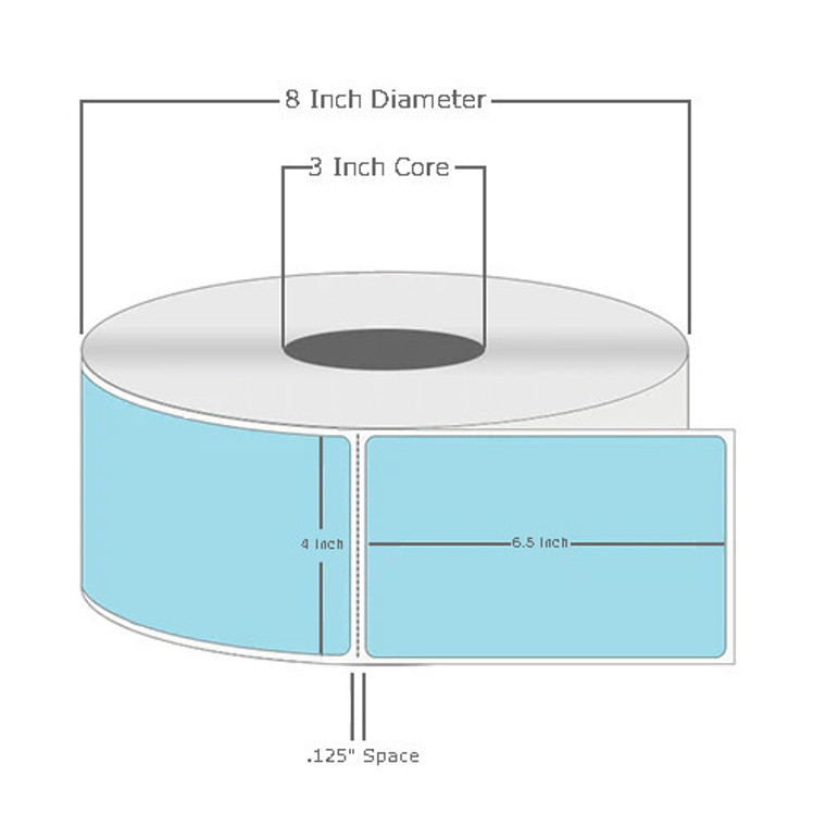 4" x 6.5", Thermal Transfer, Perforated, Roll, 3" Core, Coated, General Use, Blue, $27.25 per Roll in 4 Roll Case