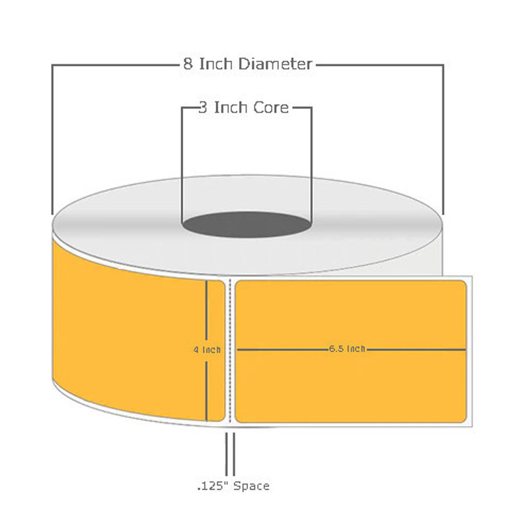4" x 6.5", Thermal Transfer, Perforated, Roll, 3" Core, Coated, General Use, Orange, $27.25 per Roll in 4 Roll Case