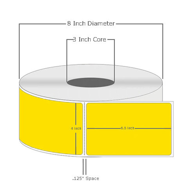 4" x 6.5", Thermal Transfer, Perforated, Roll, 3" Core, Coated, General Use, Pantone Yellow, $27.25 per Roll in 4 Roll Case