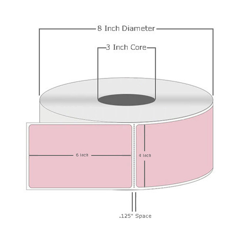 4" x 6", Direct Thermal, Perforated, Roll, 3" Core, Uncoated, General Use, Pink, $45 per Roll in 4 Roll Case