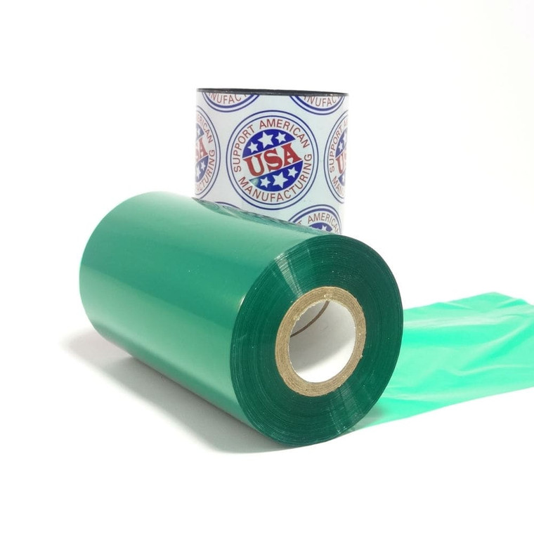 Resin Ribbon: 2.52" x 984' (64.0mm x 300m), Ink on Outside, Green, $26.25 per Roll in 12 Roll Case.